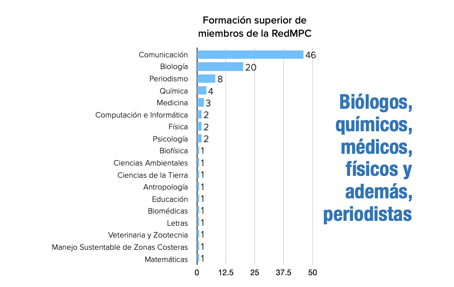 Uno de los hallazgos más relevantes es la diversidad de perfiles. Aunque una parte importante proviene de la comunicación y el periodismo, casi la mitad tiene formación en áreas científicas como biología, física o medicina.
